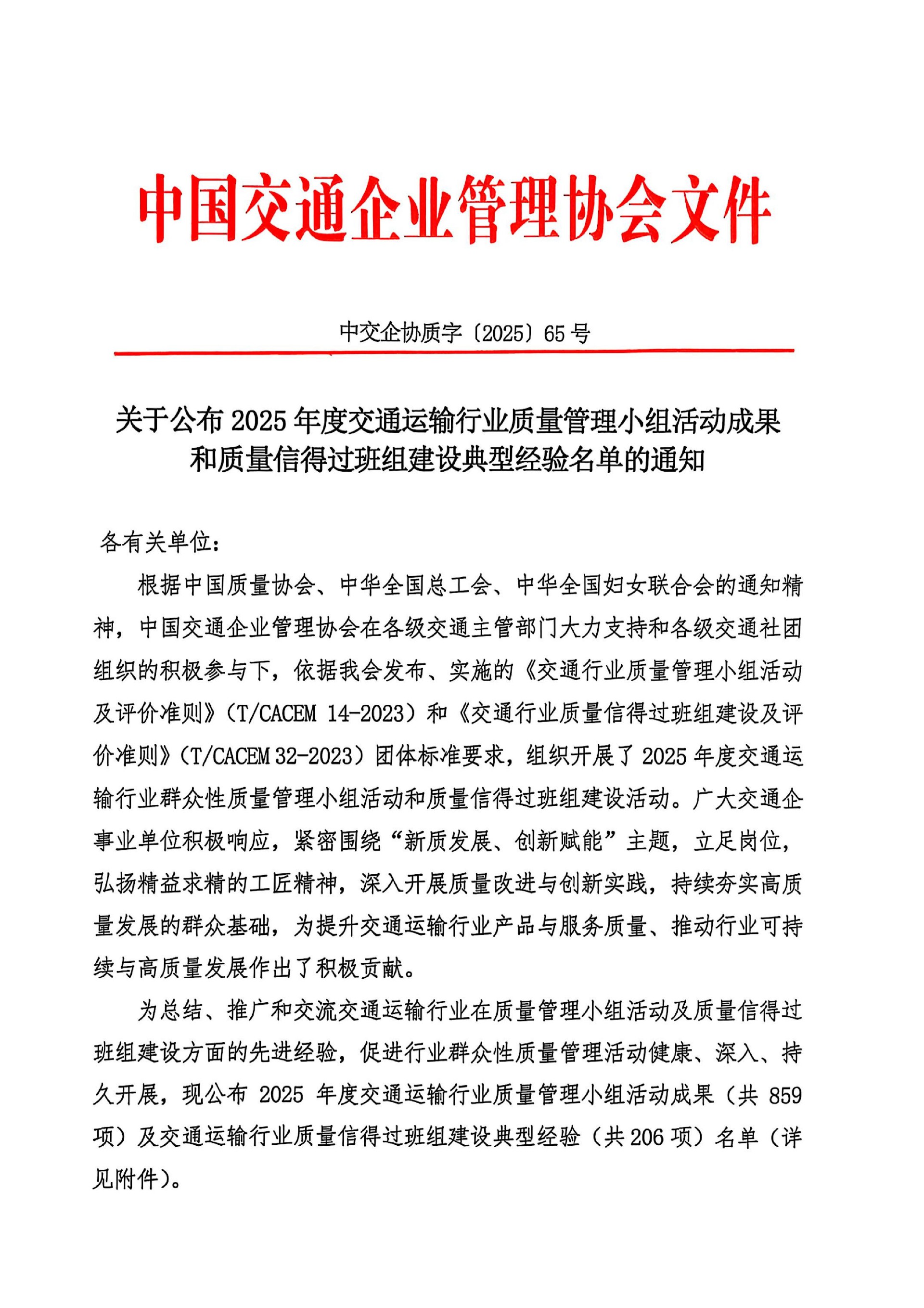 近日,中國公路建設行業協會、中國水利工程協會先后公布了第三屆全國公路建設質量管理小組活動成果評審結果和2025年度水利企業質量管理小組競賽活動結果。“···